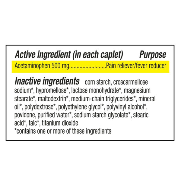 • Thành phần Acetaminophen 500mg giúp giảm đau mà không gây kích ứng dạ dày như Aspirin.